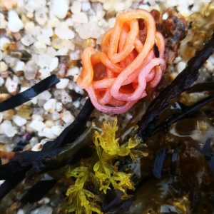 The Sea Hare is a hermaphrodite, but must come together to breed; sometimes mating in chains, with an individual acting as both male and female. They lay eggs in long pink strings, which look a little like pink spaghetti.