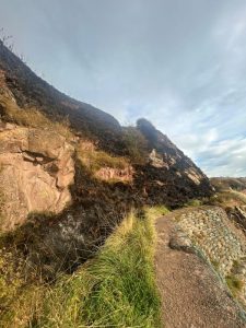 The fire broke out on cliffs near Cowie on the evening of Thursday, 3 October. It resulted in the loss of approximately 90% of the flower-rich habitat where a colony of Northern Brown Argus was known to exist.